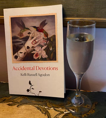 Hi Friend, Happy Weekend! I’m back from the New Orleans Poetry Festival, where I taught a surrealist poetry class with poet and librettist Melissa Studdard. We were the last class, which made me a little worried because I thought everyone might be tired and thinking about midday snacks & drinks—however, I was so wrong! What a joy to be overfilled with people—two rooms, all chairs taken, and people on the floor—all writing surreal poems. It made me realize that even with everything in the world, people still want to create something, to write poems, to be in community. I needed that reminder. Melissa and I also did a little photoshoot for our poetry series, Poems You Need, and I, of course, wore the wrong shoes and sliced my foot (this should be no surprise to anyone who knows me—I always wear the wrong shoes). The problem was—we had no tissues to stop the blood; it was just me, bleeding onto my discount Italian flip-flops and the sidewalk like a very low-budget horror film. Our photographer, who turned out to be a quick-thinking hero, pulled out a tiny white baby sock (clean! her son’s!) she’d been using as a lens cover and saved the day. (And yes, I was fine, no stitches, just alcohol, Neosporin, and a very tight bandaid!) I won’t share photos of that, but I will share a favorite photo below. The one where I’m trying to get an author photo but I’m photobombed (photoboned?) by a dog who looks like he might be judging my shoe choice. Fair enough. . .he was a sweet pup. 💙 Of course, here’s the thing I keep learning again and again—nothing is ever just one thing. I keep realizing how much we live in the world of and/also. Yes, it was an inspiring festival and also my 92-year-old mom got a bad flu, fell, hit her head, and landed in the hospital. Yes, my book comes out in two weeks, and yes, I am on hold with Medicaid while purchasing her a walker online. Yes, there is joy, but there is also exhaustion. And yes, the world keeps handing us too much, and also we hold hands with joy when we can. (By the way, as of right now, my mum looks to be going home Monday. 🤞) So how do we keep going? Last time I suggested poetry and cookies. This time, I’ll suggest: we keep going by making small offerings—writing the poem, sending the text, saying hello to a stranger, calling a friend, calling our congressperson, showing up as best we can, even if we’re limping a little, even if we’re wearing a baby sock over our wounds. And maybe sometimes, we keep going by asking for a little help. (You can do that if you need to, you can also rest and stay home—that is okay too!) The Importance of Preorders: A MemoirSpeaking of small things, I learned something yesterday I did not know, despite publishing my first book in 2003, I somehow did not know how much book preorders matter—like, really matter. Did you know this? I learned that apparently, the more preorders a book has, the more likely it is to end up in actual bookstores on the actual shelves—whhaaaat? Was I just floating around in a cloud singing “la-la-la I write poems and hope for the best”? (Yes. Probably yes.) So if you’re an author or poet, know that your preorders do matter—no matter where the preorder happens. (Of course, we can’t build our life around worrying about book sales because that’s a great way to just feel bad about ourselves—but it’s good to know as an author because until this year, I’ve never really even suggested preordering, I’ve mostly waited until the book is out!) So if you were planning to pick up Accidental Devotions, please consider doing a preorder (or order a copy for a friend) as it genuinely makes a difference—not just for me, but for the life of the book out in the world, for my press, and maybe even the small, lovely chance that someone might stumble across it when they didn’t even know they needed it. ALSO—if you do preorder and want a signed bookplate, just reply to this email or write me at kelli@agodon.com with your snailmail address and I will happily send you one with a sweet thank you note as well…I mean, as my poem says— Other Good Things: