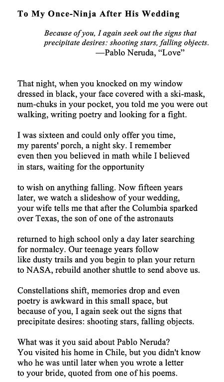 So that’s it for now. I hope this finds you in good shoes and waltzing into the small miracles of spring. Thank you for being here. Thank you for reading, for your joy, for your notes and emails and support, and for keeping me company on this strange and beautiful spinning planet—the images from Artemis II remind me that from up there, the borders we argue over don’t exist—all those invisible lines we keep insisting on while the earth just keeps being whole. Here’s one of my favorite images from the mission, it makes me cry (and I’m not even in an airplane right now): Happy Spring! If all else fails, follow the blossoms—they seem to know what they’re doing. 🌸 xo, kells 📍Where to find me: Facebook, Instagram, Groovin’ on a Saturday Afternoon This post is public—feel free to share it with a friend, another poet, or any devoted reader. 💕 Thanks for reading Postcards from a Poet, a joyfully unpredictable newsletter with surprisingly good timing and that will always be free.